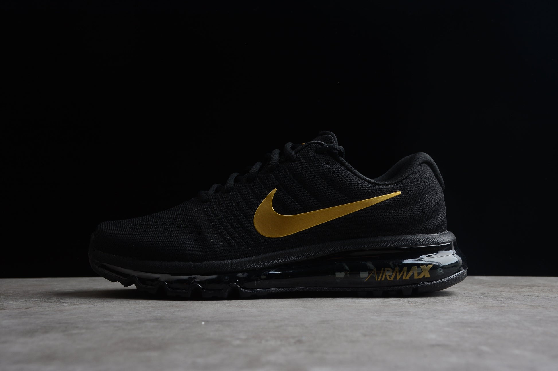 Nike Air Max 2017 in einer auffälligen Black/Gold-Farbkombination.