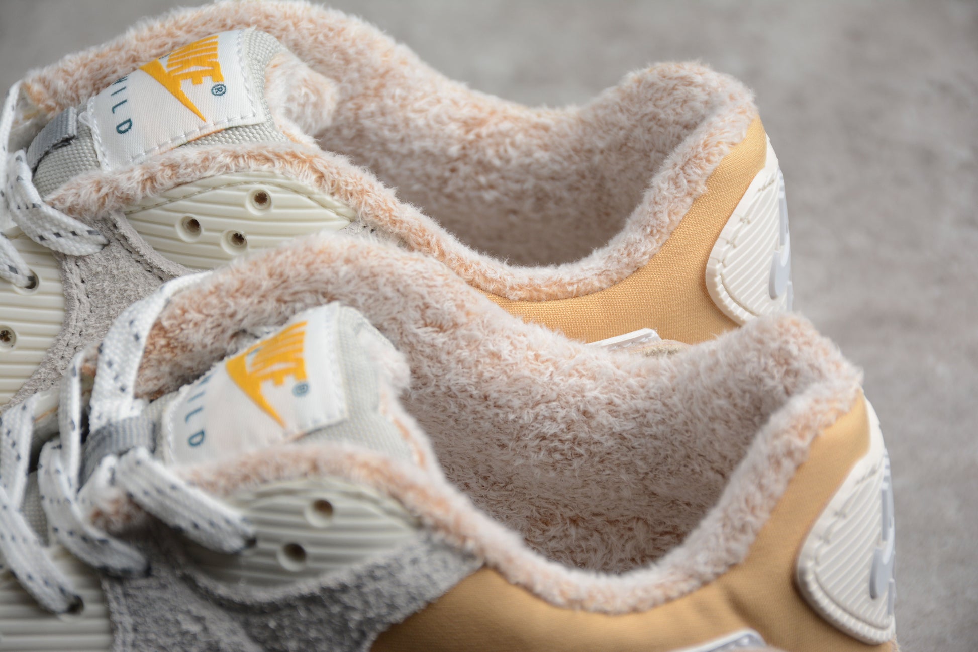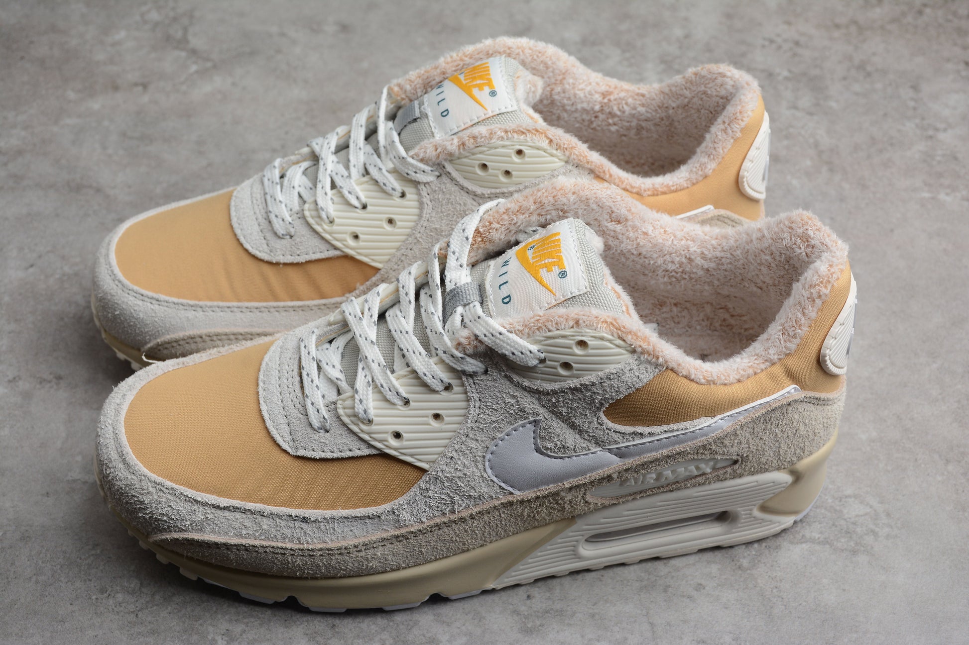 Die Kombination aus hellen Sandtönen, strukturiertem Wildleder, hochwertigem Canvas und einem flauschigen Innenfutter, das an Winterabende in einer Berghütte erinnert, macht die Air Max 90 „Wild“ zu einem wahren Statement – dezent, aber wirkungsvoll.