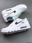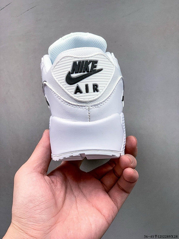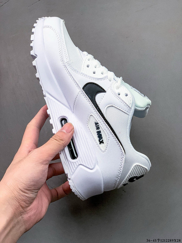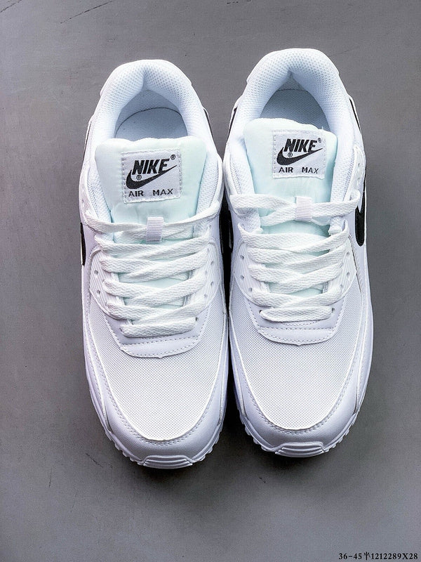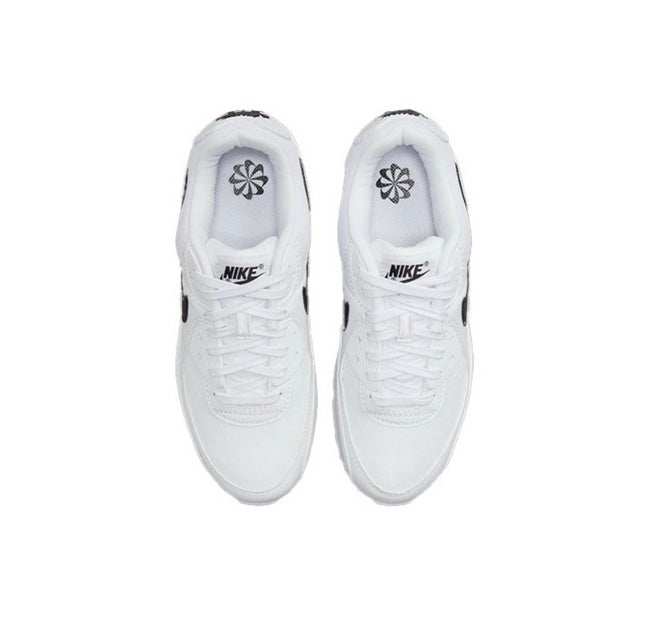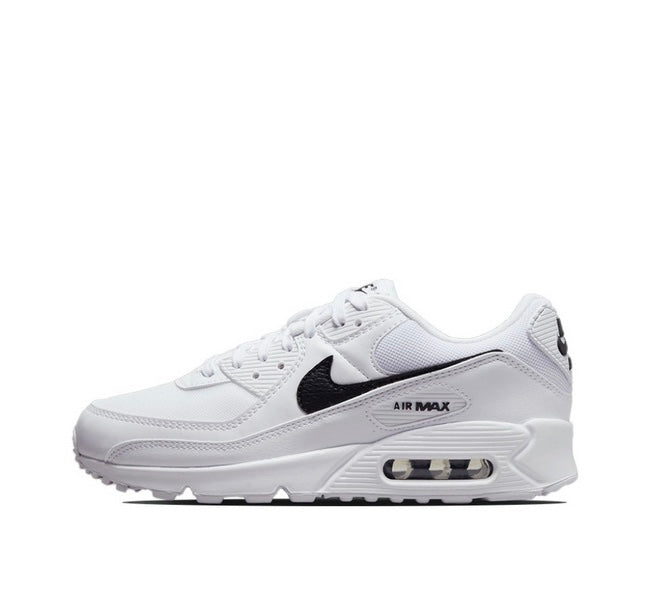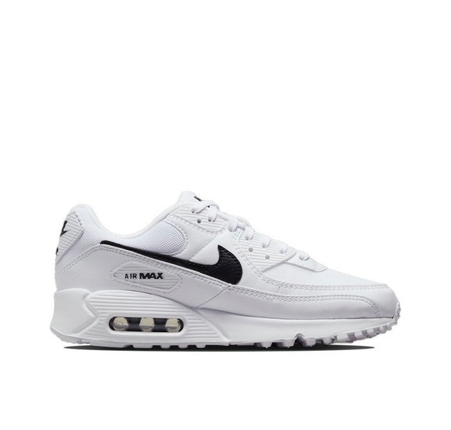 These sneakers are the Nike Air Max 90 in a white and black colorway. The Air Max 90 is known for its timeless design, comfort, and performance, making it a popular choice among sneaker enthusiasts. Key features of this model include: