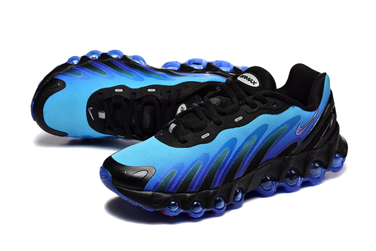 The Nike Air Max DN represents the evolution of Nike’s long-running Air Max legacy, blending futuristic design with next-generation comfort. This particular colorway — a striking blue-to-purple gradient with black and chrome detailing — exemplifies Nike’s ambition to fuse athletic function with bold street style.