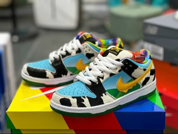 Die Nike SB Dunk Low “Chunky Dunky” ist das Ergebnis einer ausgefallenen Kollaboration zwischen Nike SB und der bekannten amerikanischen Eismarke Ben & Jerry’s. Inspiriert vom legendären „Chunky Monkey“-Eis, ist dieses Modell ein farbenfrohes Statement im Sneaker-Game.