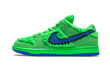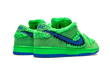 Der SB Dunk Low Grateful Dead Bears Green verfügt über ein flockiges grünes Kunstpelz-Obermaterial mit Wildlederüberzügen und einem gezackten Swoosh, um die Stilisierung des Brustfells des Bären darzustellen. In der Zunge befindet sich eine versteckte Tasche, die sich perfekt für zusätzlichen Stauraum eignet. Eine grüne Zwischensohle, eine blaue Außensohle und das charakteristische Grateful Dead-Branding auf der Zunge runden dieses euphorische Design ab. Diese Turnschuhe wurden im Juli 2020 veröffentlicht und für 110 USD im Einzelhandel verkauft.