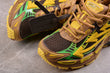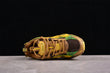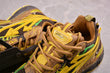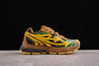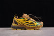 Schon beim ersten Anblick fällt eines auf: Diese Schuhe brüllen förmlich nach Aufmerksamkeit. Das Design kombiniert Trail-inspirierte Ästhetik mit urbanem Luxus. Die Farbpalette aus Sonnengelb, Waldbraun, Dschungelgrün und strukturellem Schwarz erinnert an erdige Outdoor-Abenteuer, gepaart mit futuristischem Glanz.