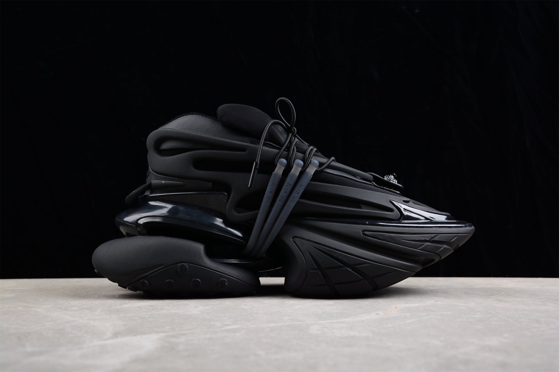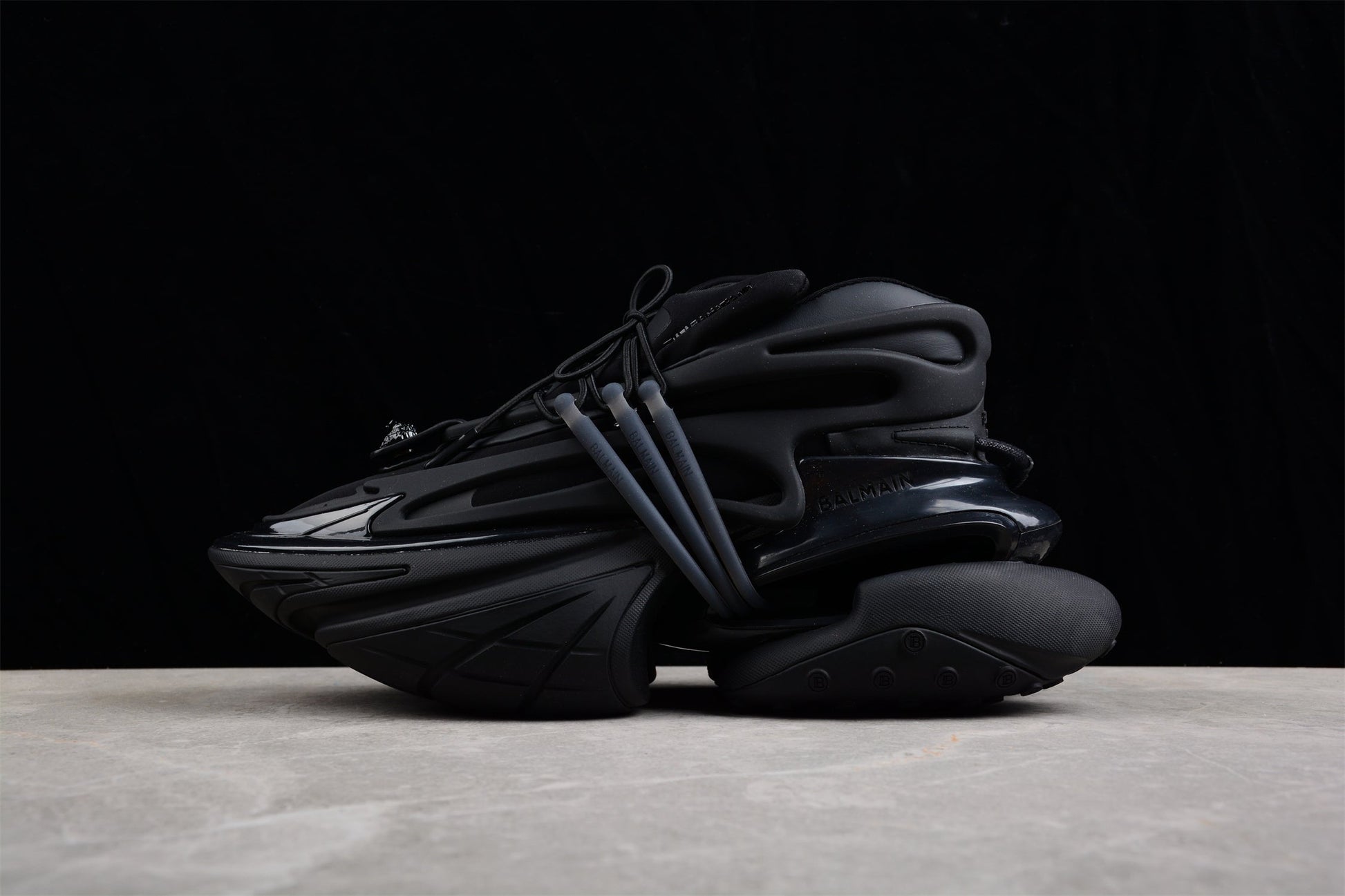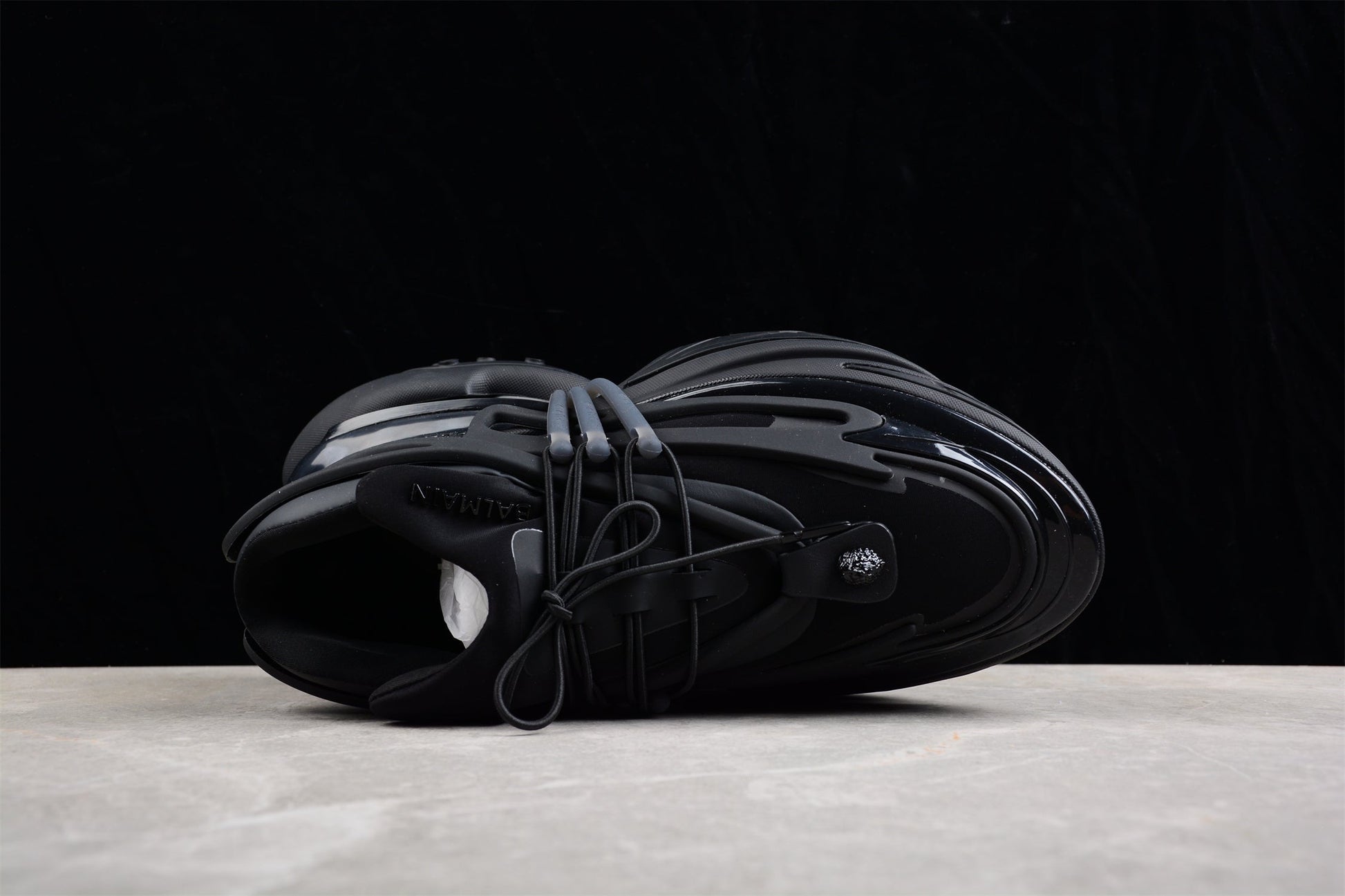 Der Balmain B-Runner Triple Black überzeugt durch seine komplett schwarze Farbgebung, die den Fokus auf die außergewöhnliche Silhouette legt.