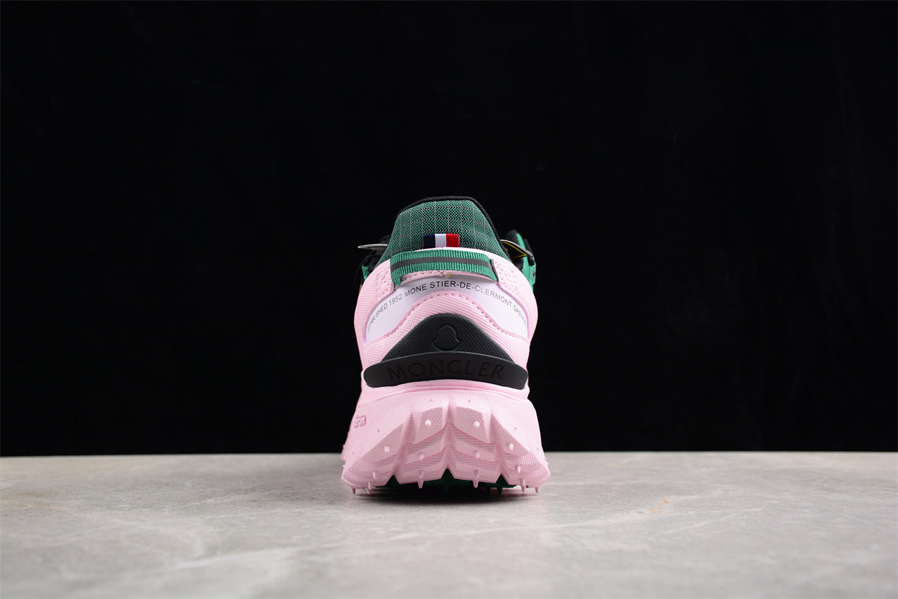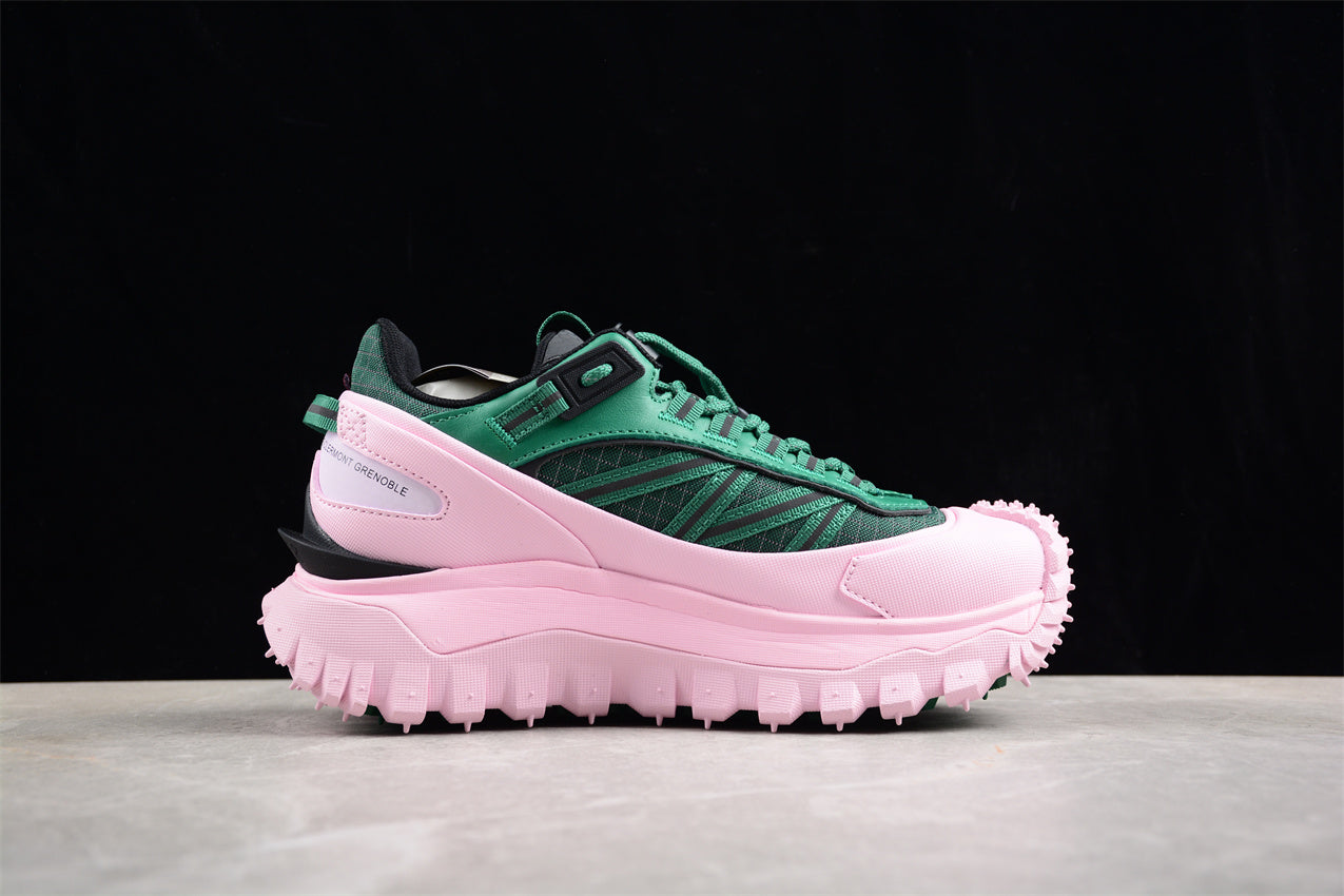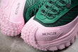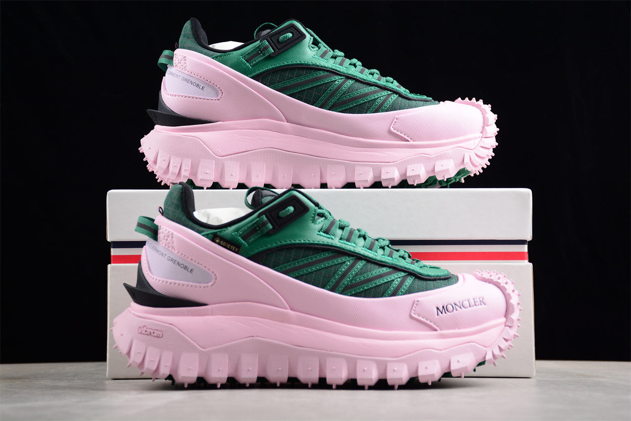 Die Version in Grün und Pink ist dabei besonders auffällig – eine Kombination, die auf mutiges Design trifft, aber auch klare Symbolik trägt. Grün steht für Natur, Outdoor, Robustheit. Rosa bringt Kontrast, Verspieltheit und Modemut. In Verbindung mit dem Namen Moncler, der für höchste Qualität und alpinen Chic steht, entsteht ein Schuh, der buchstäblich herausragt – optisch, funktional und emotional.