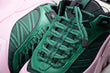 Die grün-pinke Variante des Trailgrip GTX Low ist mutig und ungewöhnlich – aber genau das macht sie aus. Das tiefe Tannengrün im Obermaterial erinnert an Wälder und Natur, während das kräftige Rosa der Mittel- und Außensohle fast wie ein futuristisches Element wirkt. Diese Kombination symbolisiert die Dualität des Schuhs: Natur und Technik, Outdoor und Fashion, Wildnis und Metropole.