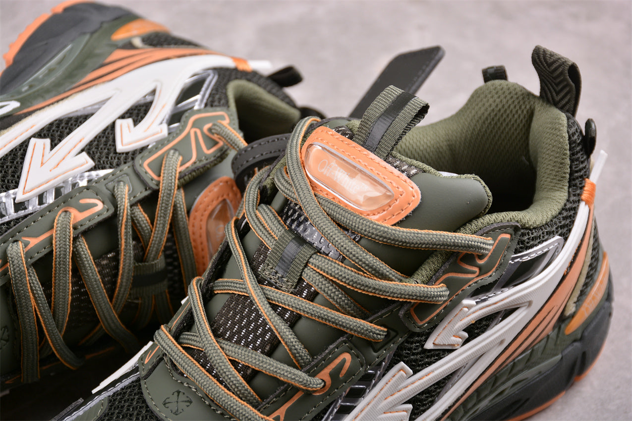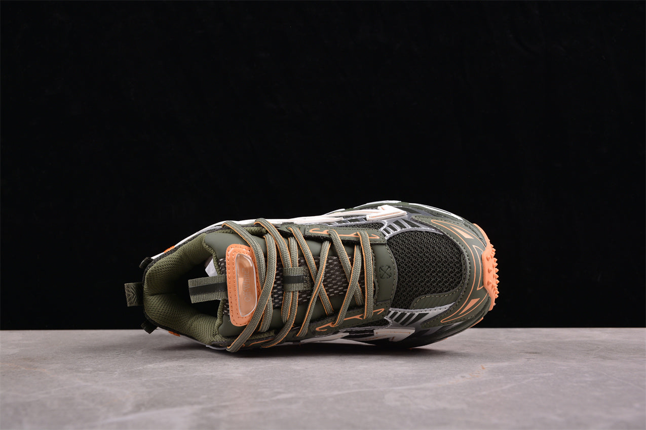 Off-White™ x Nike Zoom Vomero 5 – Olivgrün/Orange/Weiß: Die Fusion aus Funktionalität, Design und Streetwear-Rebellion