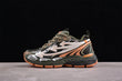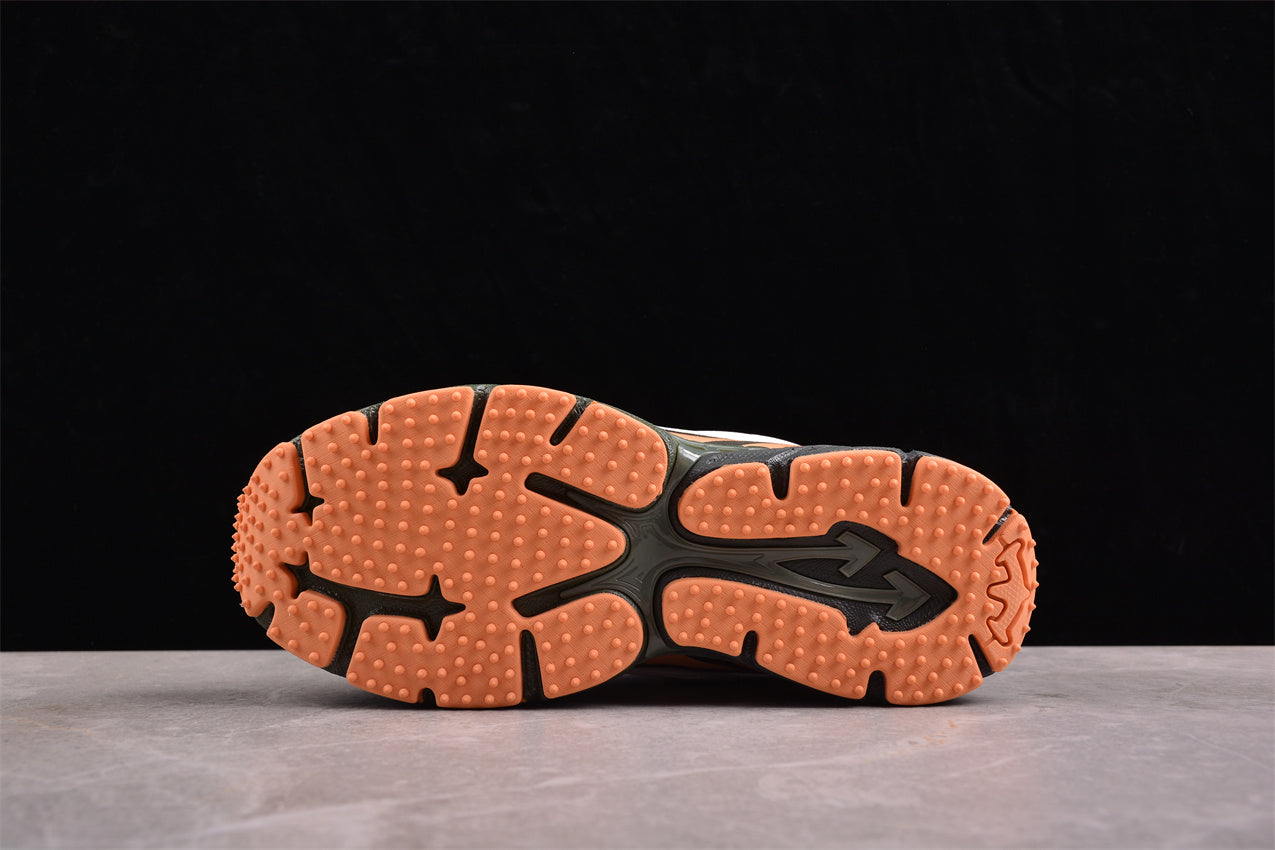 - Orange als Akzent: Besonders auffällig an der Zunge, Außensohle und Fersenkappe – ein Hinweis auf Warnfarben aus der Sicherheits- oder Baustellen-Ästhetik.